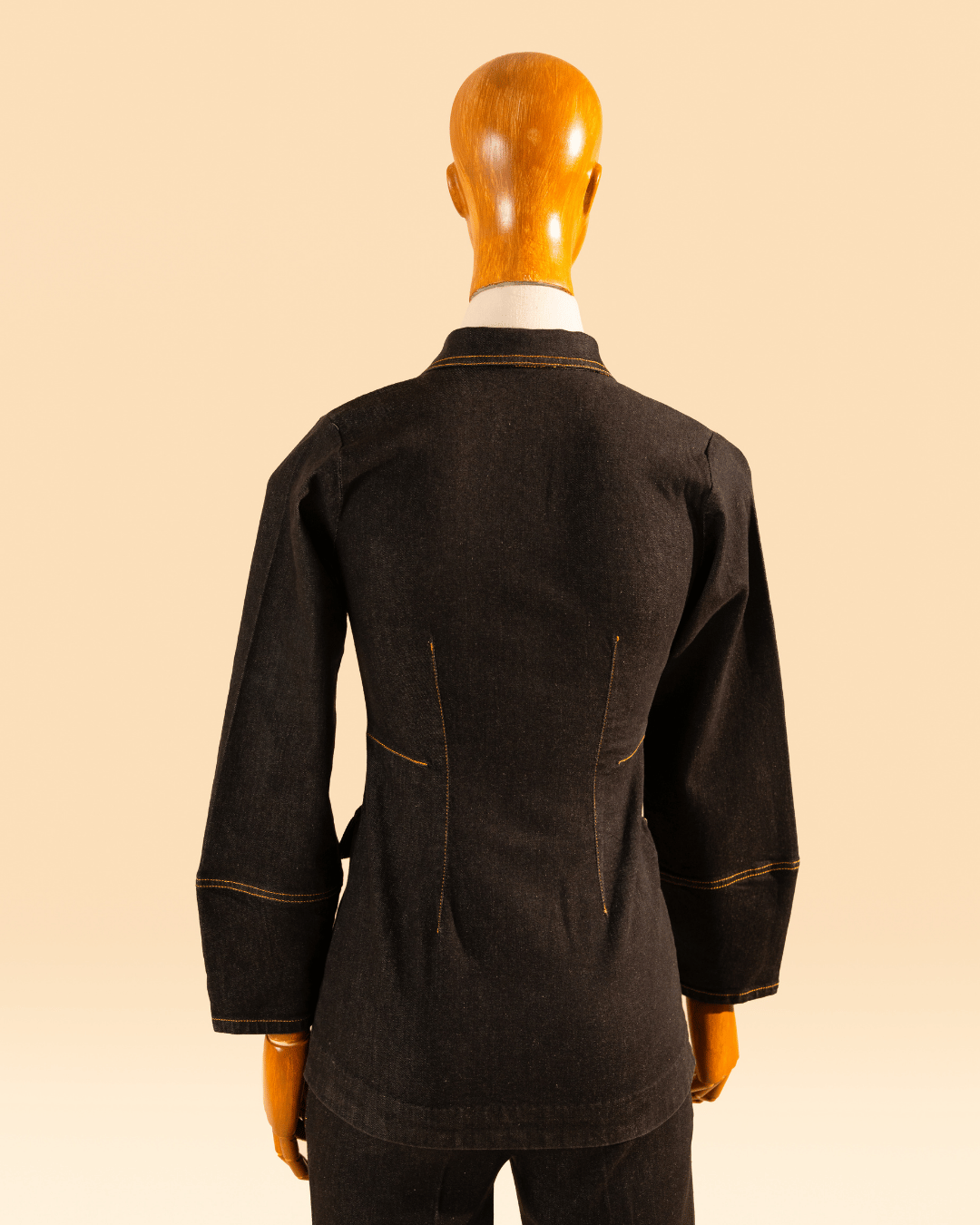 Crafted from dark raw denim, this longline jacket embodies a refined utilitarian aesthetic. Structured seams, a classic shirt collar, and four flap pockets bring definition and practicality, while the rich indigo tone and metal button closure lend a polished finish. Timeless and confident, it’s a statement piece that balances structure with effortless sophistication.