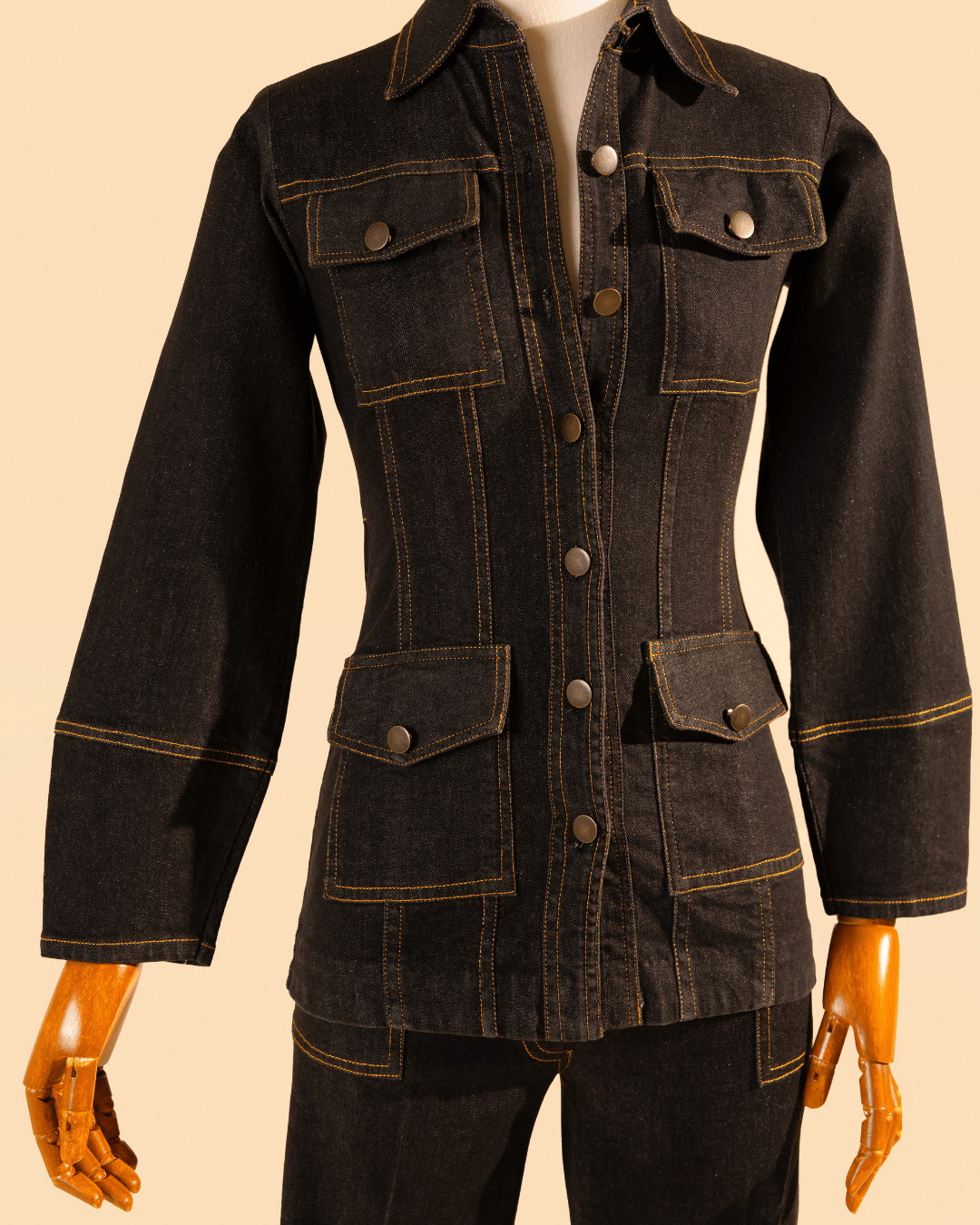 Closure: Front button-down with metal buttons