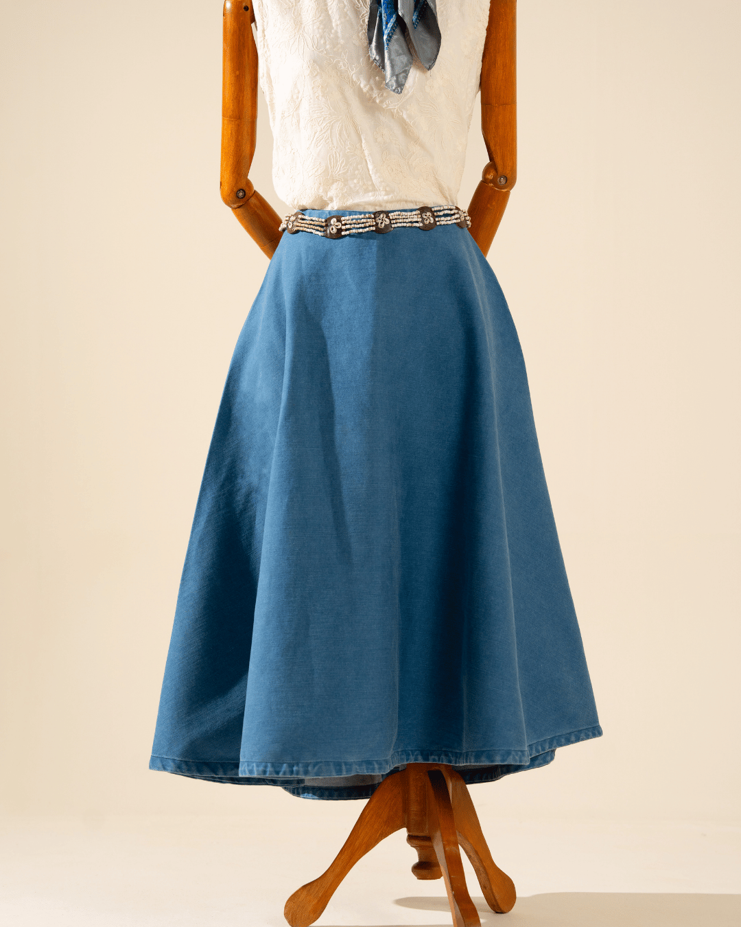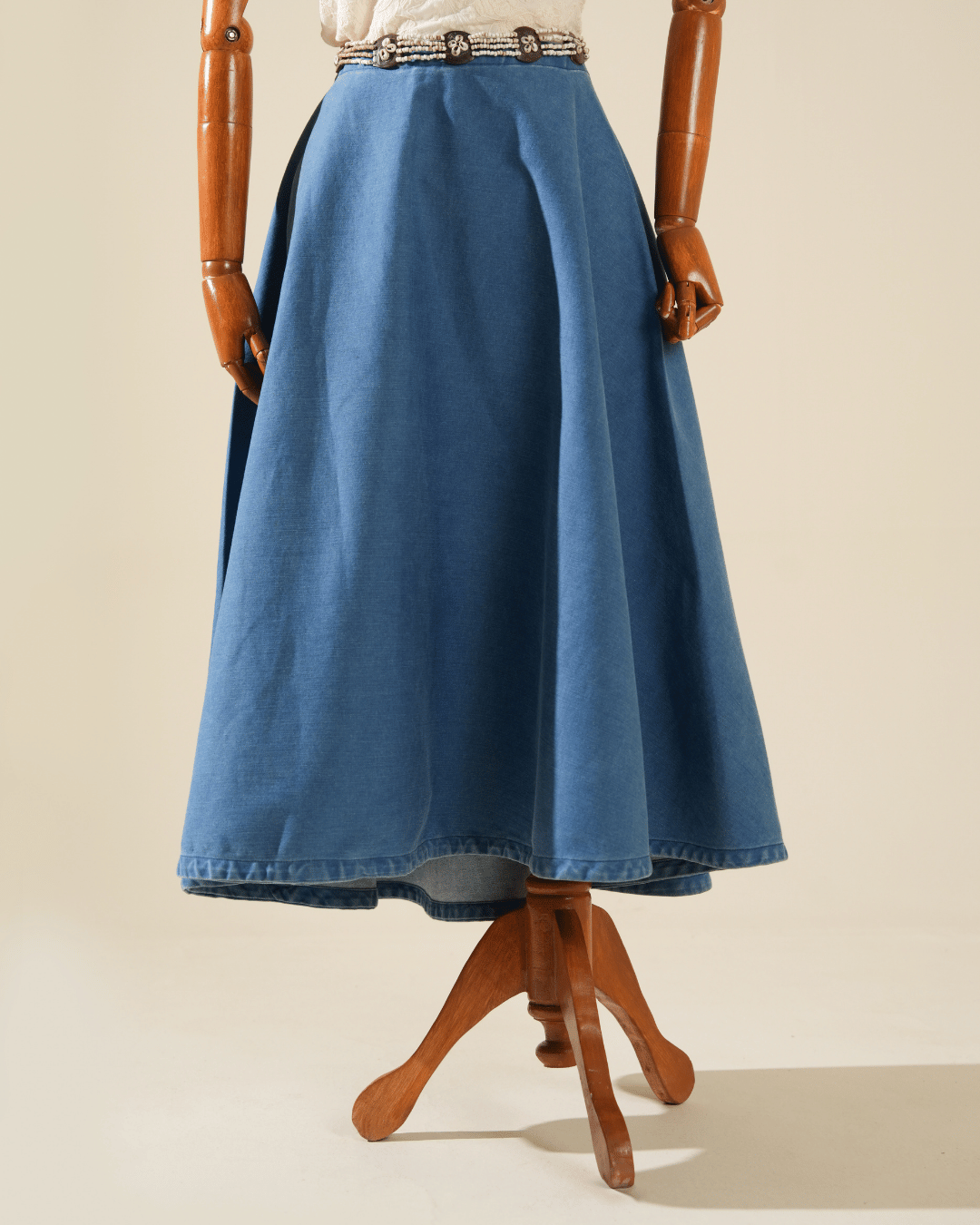 Description: A classic full-circle denim skirt designed for effortless movement and timeless