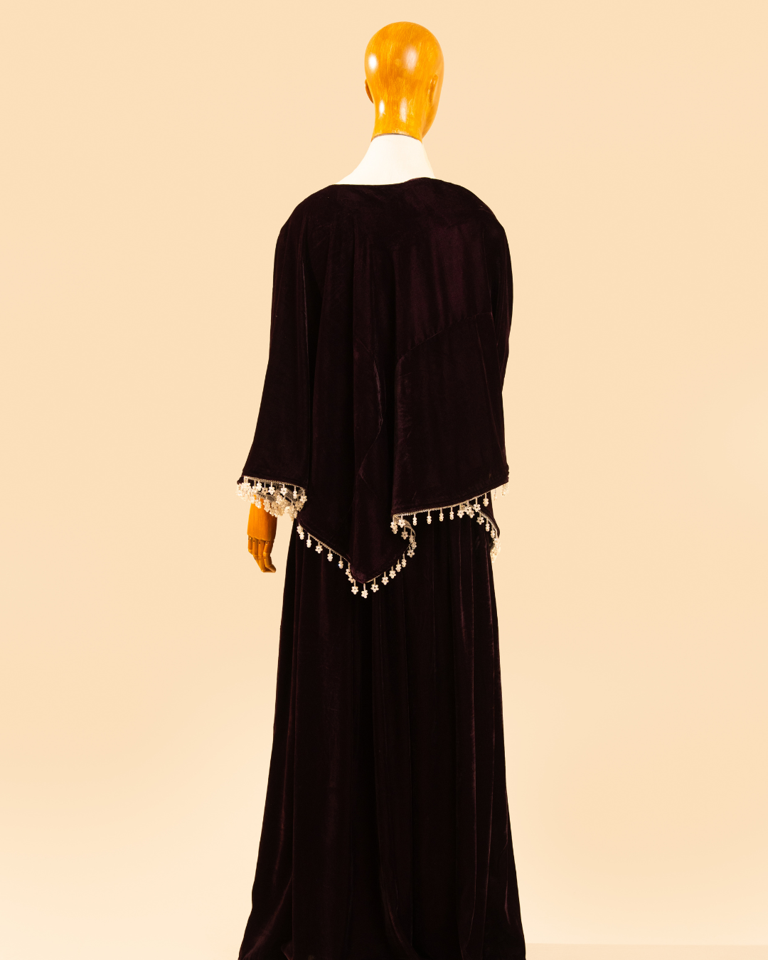 Embellishment: Pearl-beaded trim on edges and sleeves